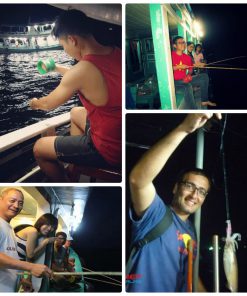 - – Trong khi thuyền đang chạy, quý khách sẽ được ngắm mặt trời lặn. Khi đến khu vực câu mực, đèn sẽ được bật sáng, quý khách nhận dụng cụ câu mực. Hướng dẫn viên sẽ hướng dẫn cho quý khách cách câu mực đêm và sau đấy là màn trổ tài của các bạn để bắt được những con mực to nhất và được cảm nhận lý thú tiêu khiển khi tự tay mình câu được.